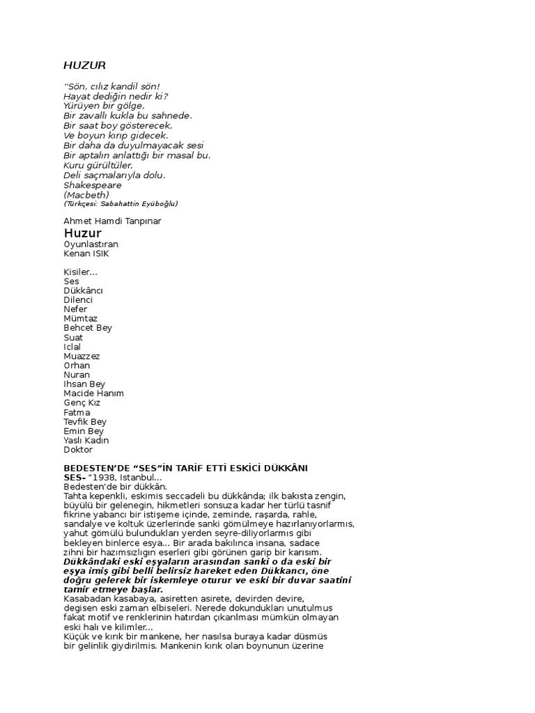 Ahmet Hamdi Tanpinar Huzur Pdf