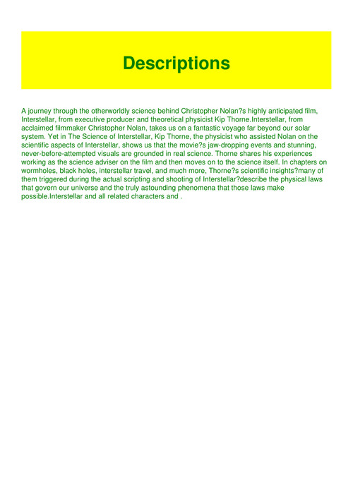 The science of interstellar 1 st edition is a must read for the enthusiast who wishes to know the nitty gritty of interstellar and the basics of astrophysics. Yet in the science of interstellar kip thorne the physicist who assisted nolan on the scientific aspects of interstellar shows us that the movies jaw dropping events and stunning never before attempted visuals are grounded in real science. Thorne shares his experiences working as the science adviser on the film and then moves on to the. The science of interstellar pdf.
